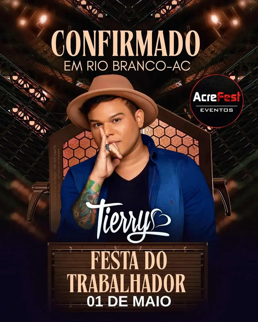 Prepare o coração e a voz, porque o “Pai das Crianças” está a caminho da nossa capital. Nesta terça-feira (21 de abril de 2026), feriado de Tiradentes, foi confirmada a presença do cantor Tierry como a atração principal da Festa do Trabalhador em Rio Branco. O evento, que celebra o dia 1º de maio, promete transformar a arena de shows em um verdadeiro piseiro de sofrência e alegria, homenageando todos os trabalhadores acreanos que movem a nossa economia.
